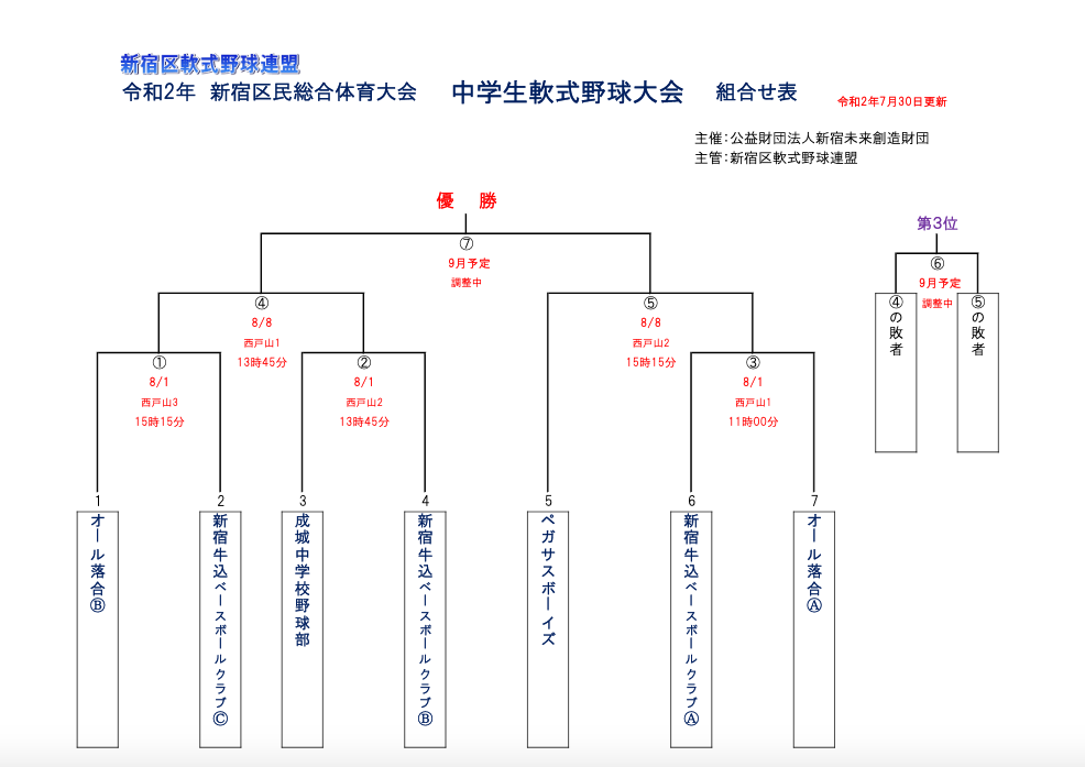 8月1日(土) オール落合A 11時00分~ vs新宿牛込ベースボールクラブA 西戸山公園野球場