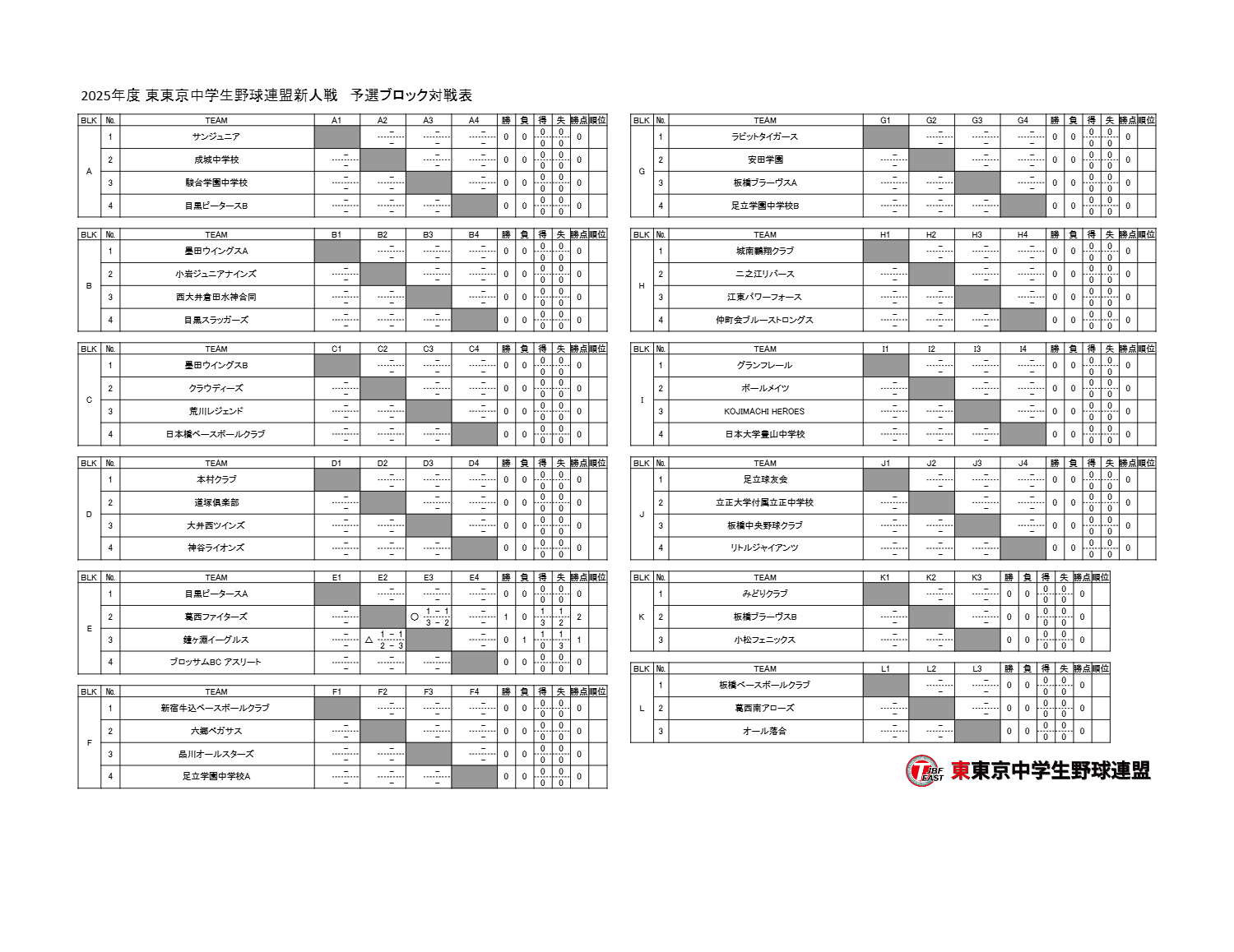 【大会日程・山組】2025年度東東京野球連盟新人戦予選ブロック1回戦