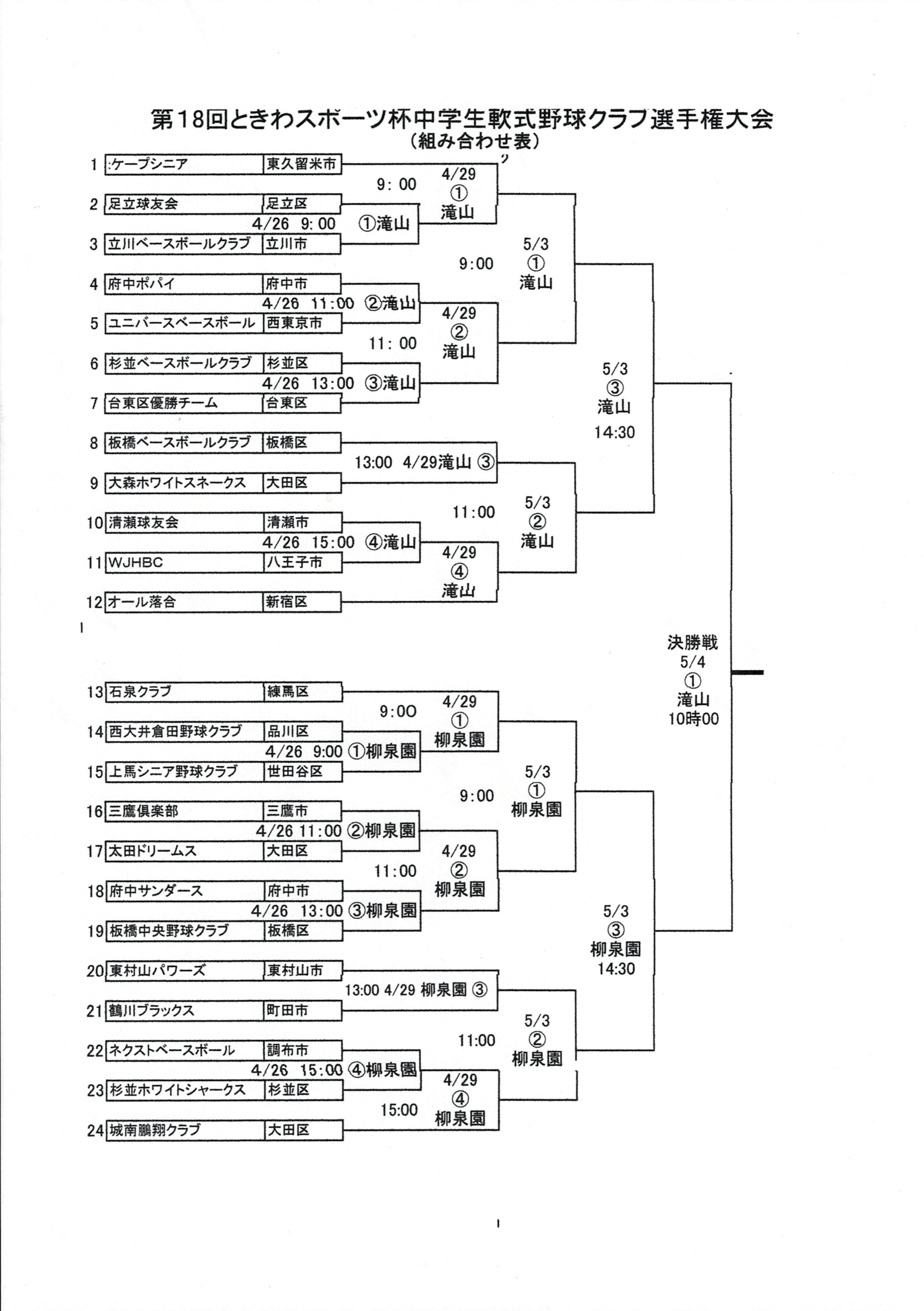 【大会日程・山組】第18回ときわスポーツ杯中学生軟式野球クラブ選手権大会