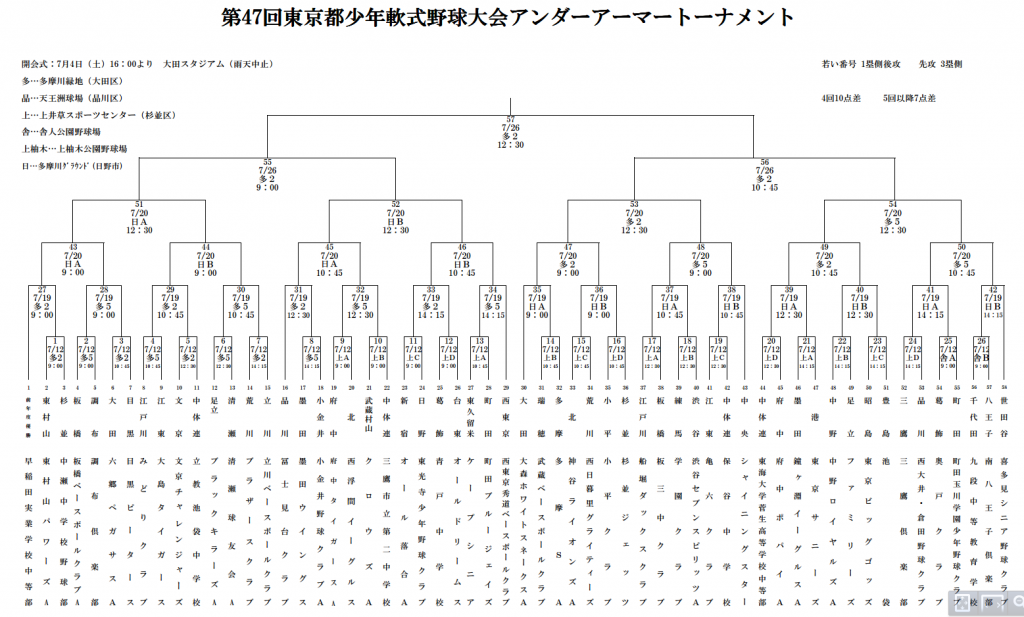 ■1回戦 12日・上井草スポーツセンターC面 vs東光寺少年野球クラブ 試合開始時間…9時